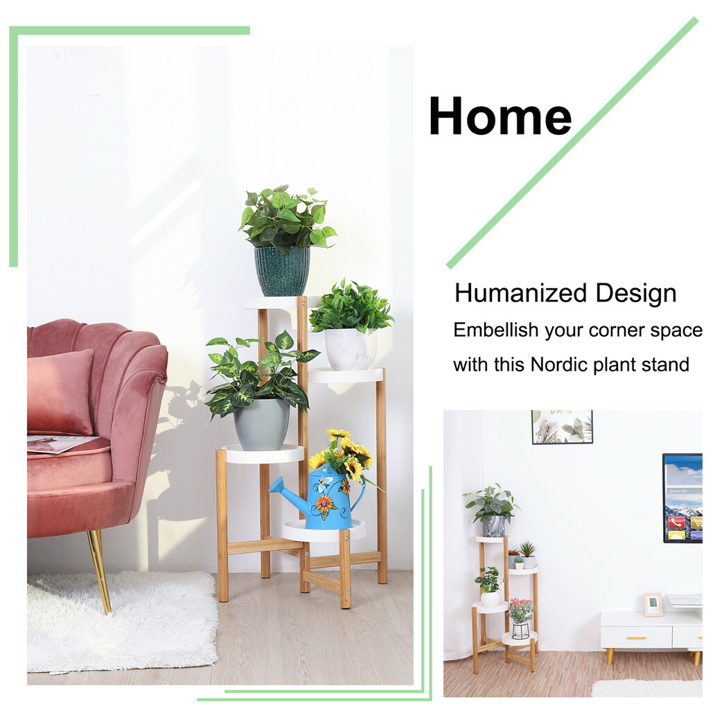 4 Tier Wood Plant Pot Stand Indoor Outdoor Garden Planter Display Holder Shelf Ebay